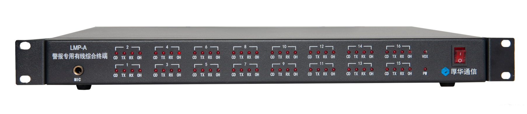 警报专用有线综合终端内置16个有线modem模块,是专门为人防警控系统实现有线控制的通信设备。Modem模块由调制解调芯片和微处理器构成,它支持标准的AT命令集,具有拨号/自动应答功能和来电选通功能。